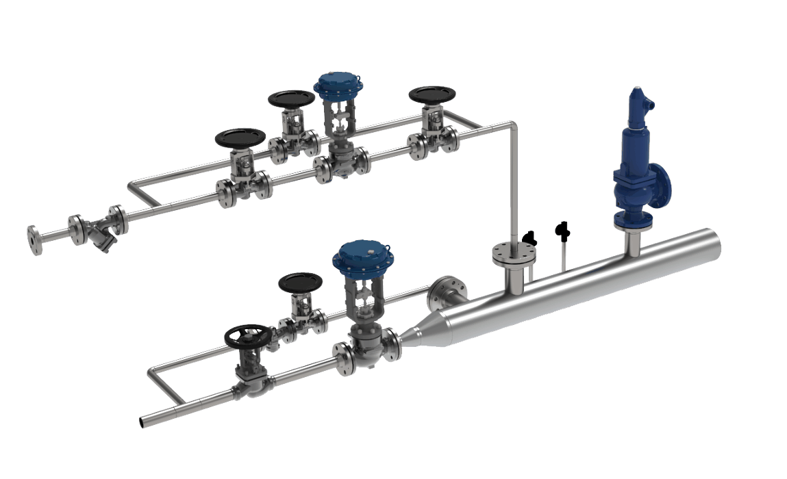 Druckreduzier- und Kühlstation ist eine kompakte Einheit mit einem Gewicht von bis zu 20 Tonnen und / oder 5–11 Meter Länge. Die gesamte Skid-Konstruktion umfasst üblicherweise Regelventile, Sicherheitsventile, Auf/Zu-Ventile, Rohrleitungen, Behälter, Mess- und Regelteile, elektrische Ausrüstung und sonstige Ausrüstung mit vorgefertigten Anschlusspunkten für eine einfache Installation.