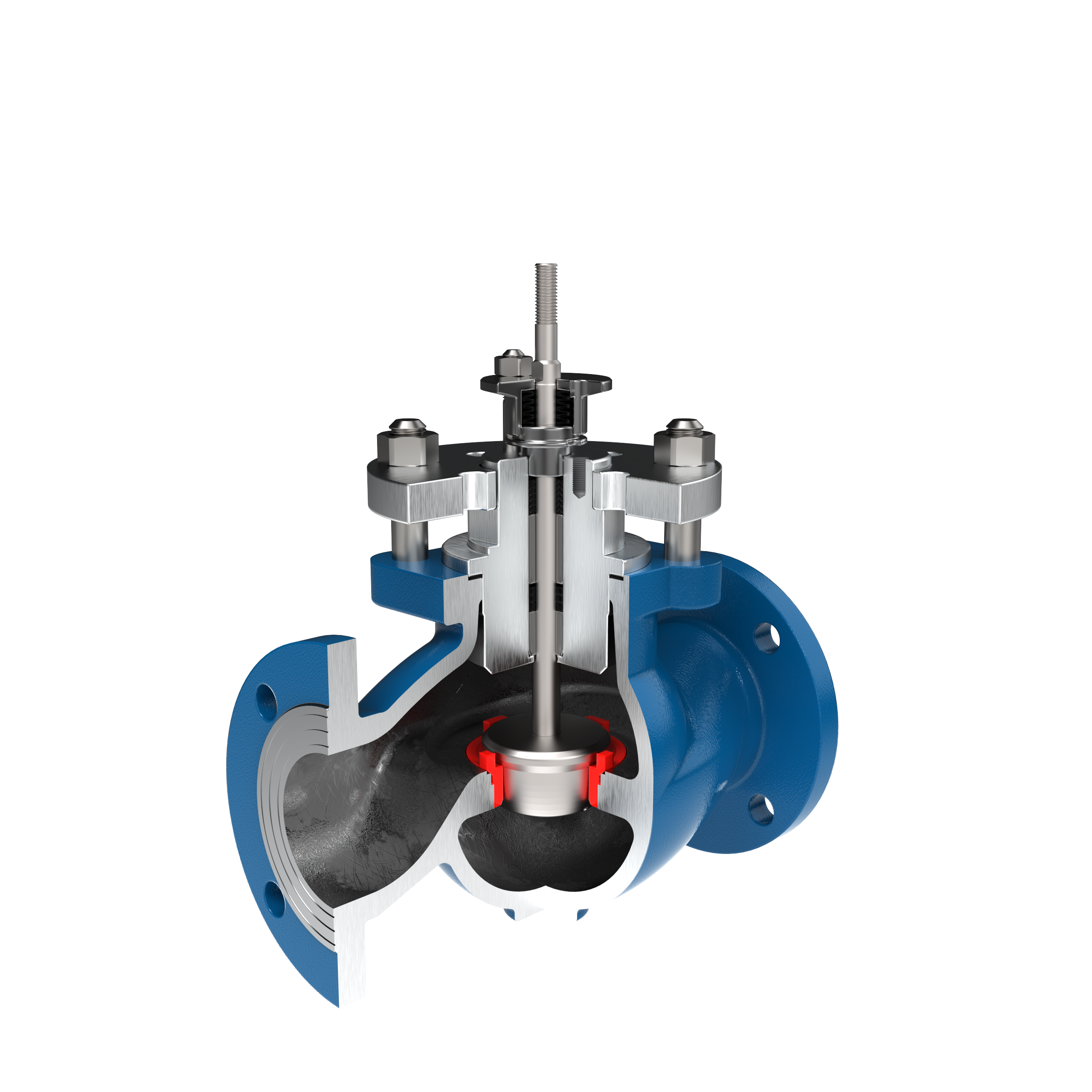 - Durchgangsventil mit Einsitz und optional ausgeglichenem Kegel